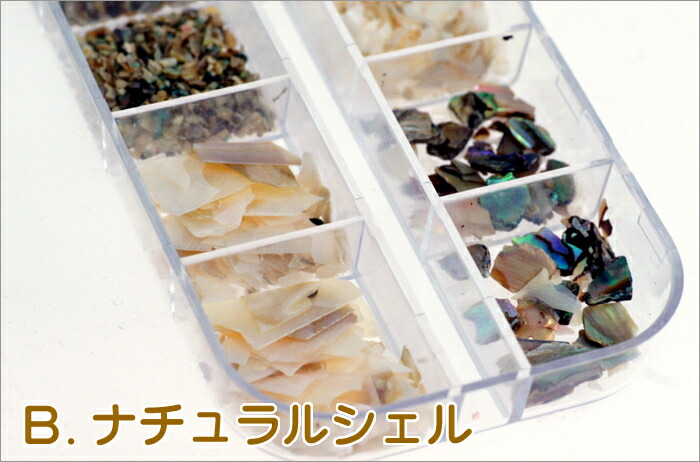 B.のナチュラルシェルは、着色をせず、本来の貝の輝きをそのまま表現しています。