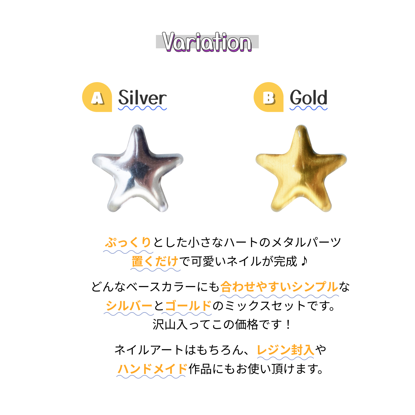 ネイルパーツ星のスタッズ シルバーとゴールドのセット 5mm メタルスタッズ メタルパーツ ネイルパーツ ジェルネイル用 レジンパーツ レジン封入 金銀