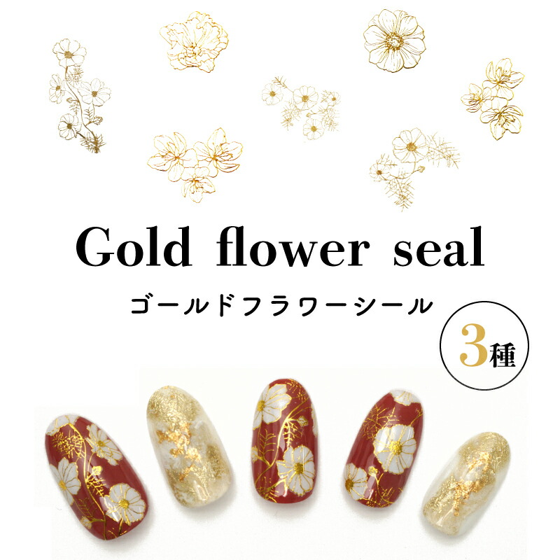 ネイルシール ネイルステッカー 貼るだけ ゴールド フラワー メタリック花 ライン ジェルネイル ネイルアート 成人式 お正月にも