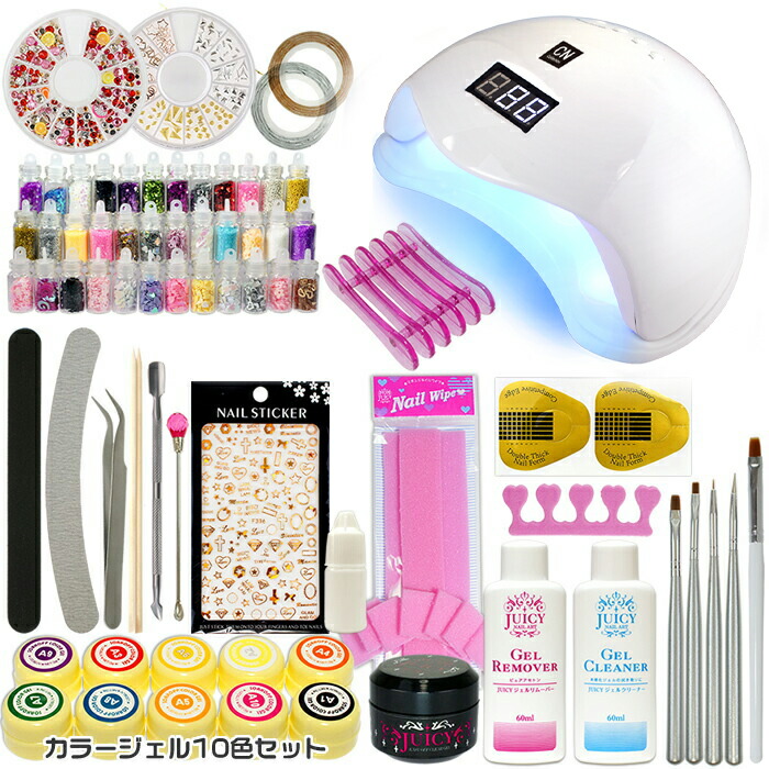 ジェルネイルキット 10色カラージェルセット付き 超豪華 ジェルネイルスターターキット 高品質ジェルと48WLEDライト本体セット ジェルネイルセット 初心者用