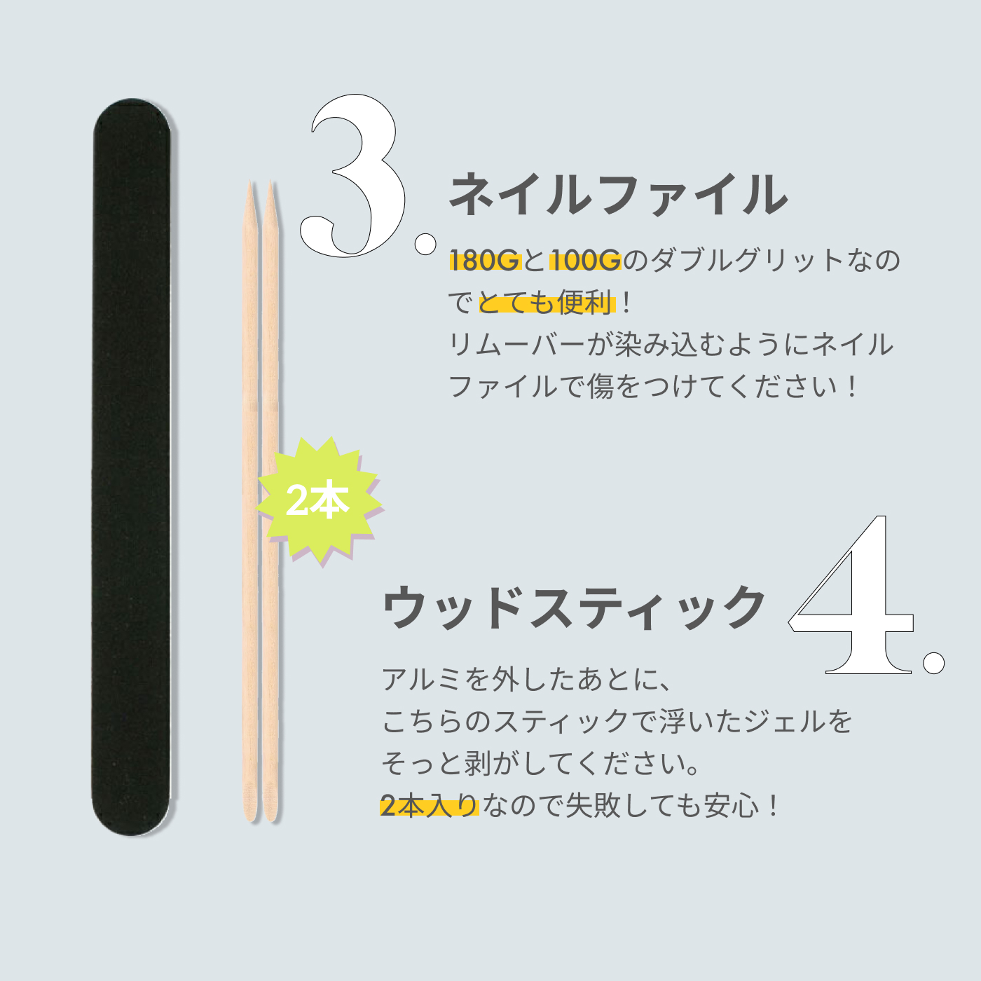 3.ネイルファイル(表面を傷つけるために使います)
