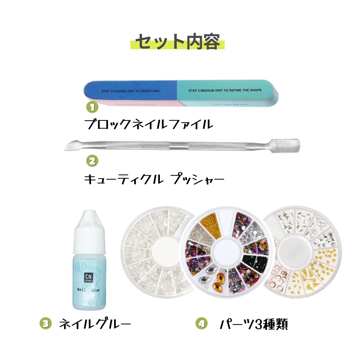 ・パーツセット3種(丸、ドロップ、星、花、四角などのストーンセット、半丸パールセット、メタルパーツセット)