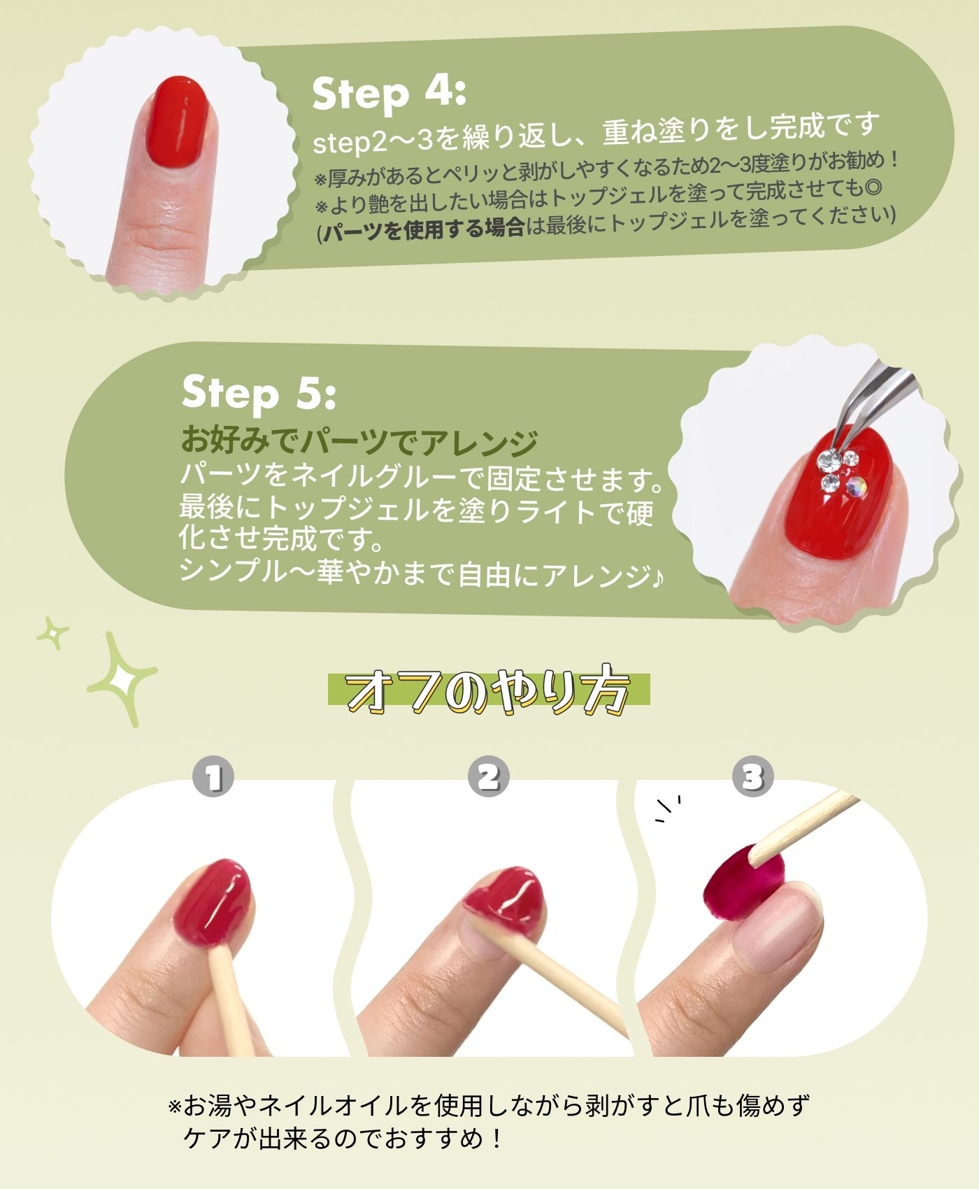 誰でも簡単にジェルネイルができて、飽きたらペロ〜ンと剥がすだけでオフできちゃう!