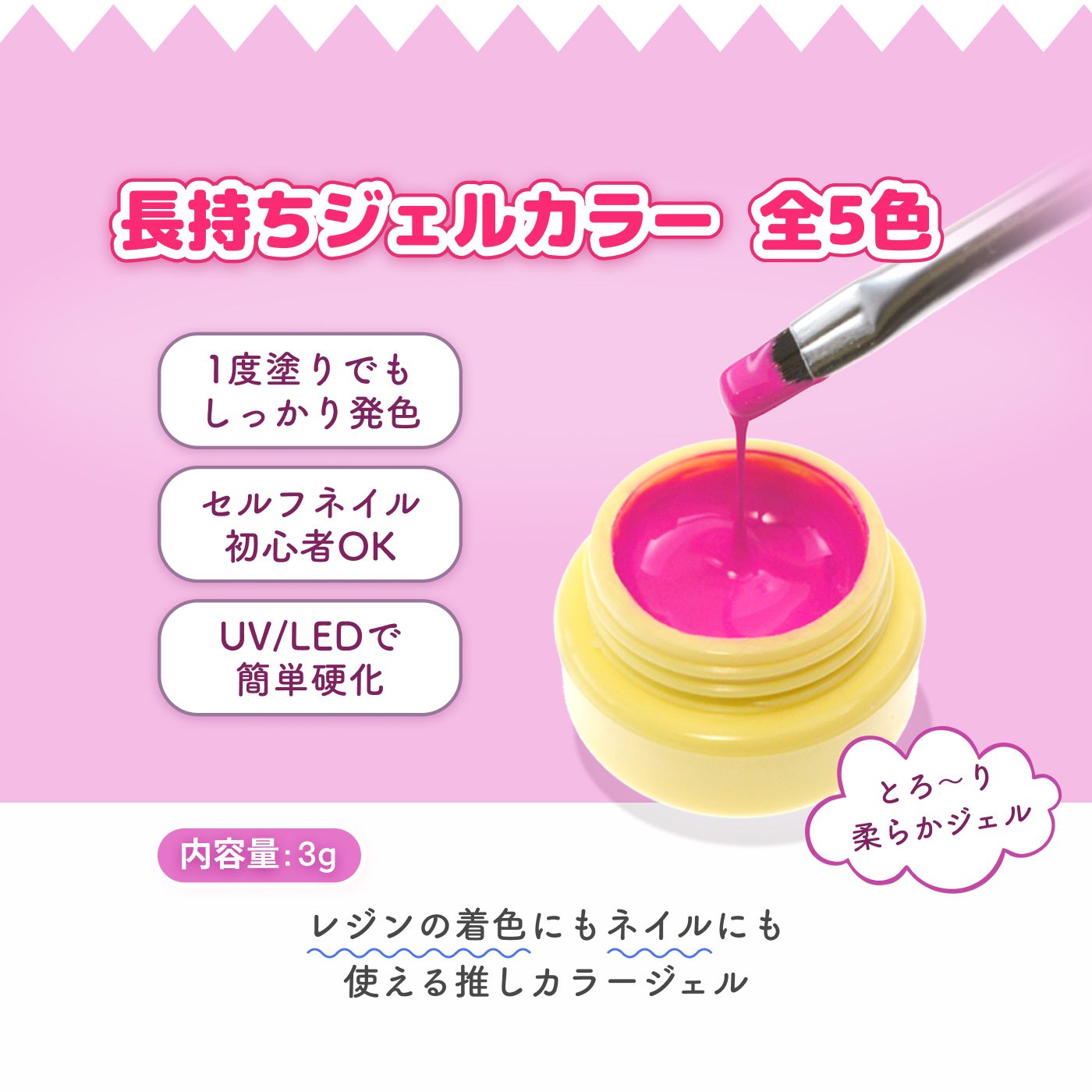 ・200色から選べるカラージェル5色(レジンの着色剤としても使えます)