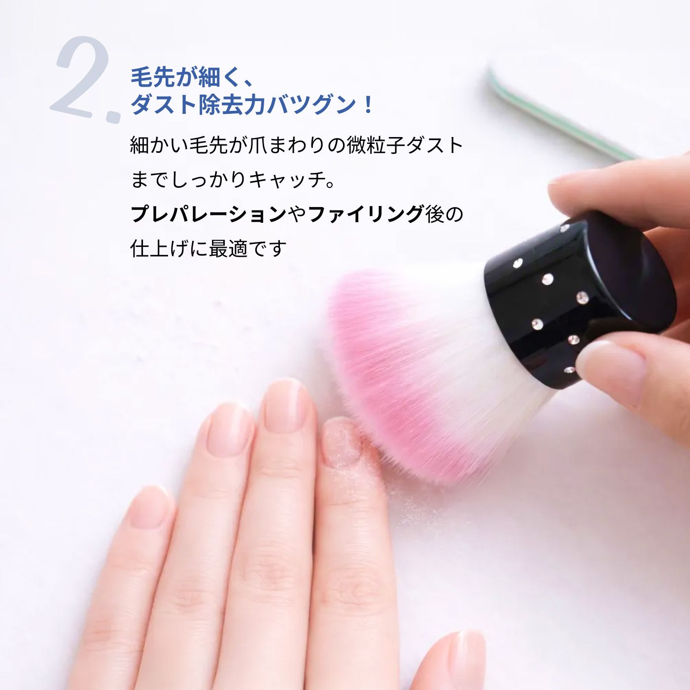 細かい毛先が爪まわりの微粒子ダストまでしっかりキャッチ