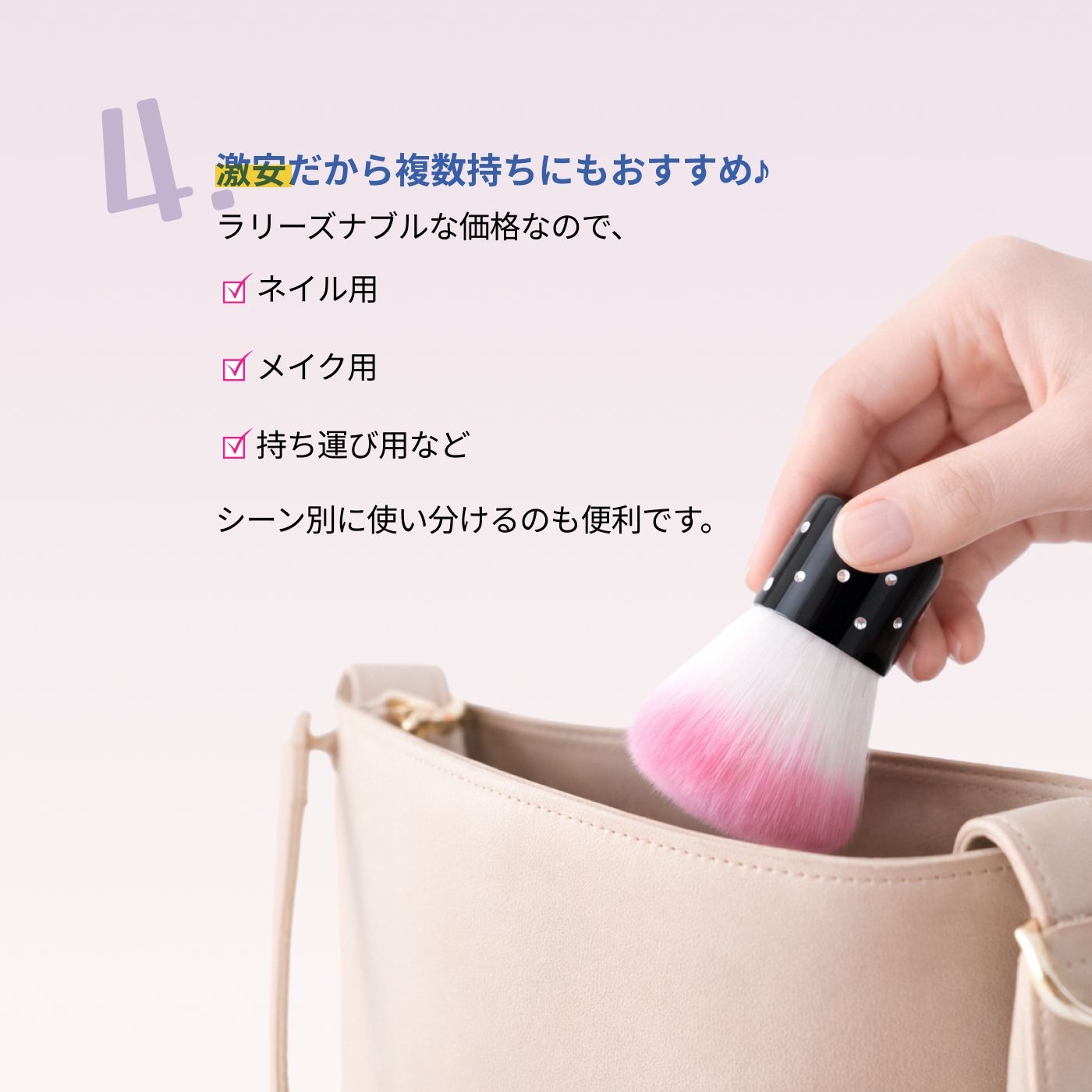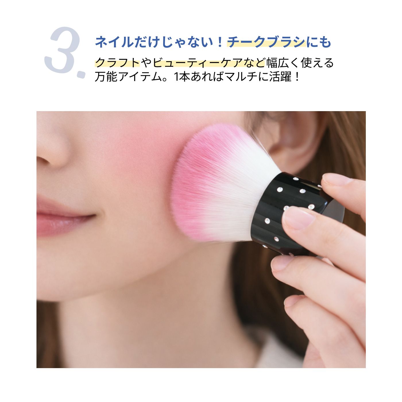 【ポイント3】ネイルだけじゃない!チークブラシにも◎