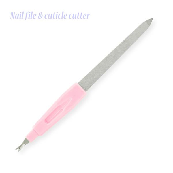 甘皮処理用のキューティクルカッターと爪の形を整えるネイルファイルが一緒になった便利なネイルケアツールです。