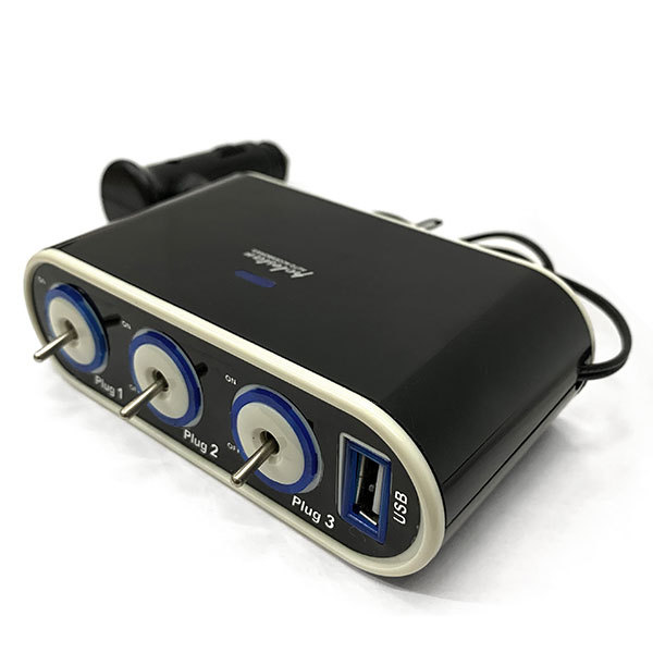 ON/OFFスイッチ付 3連シガーソケット増設 電源 USB1ポート 12V用 車