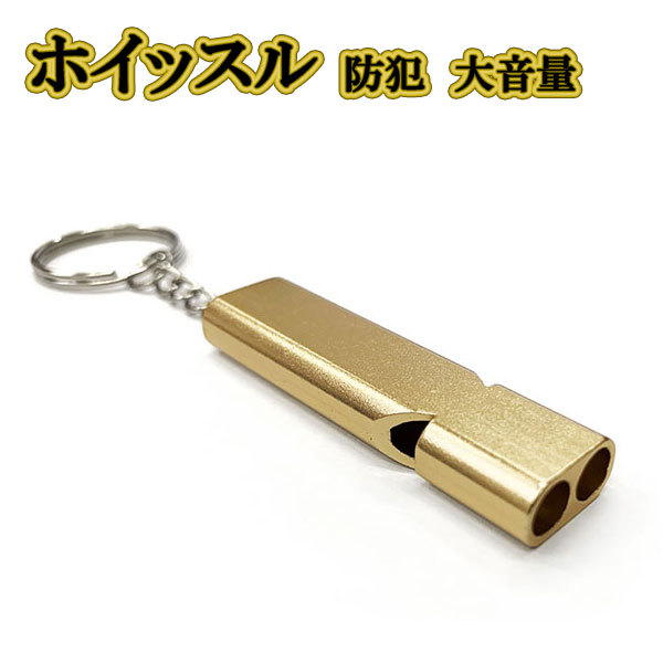 キーホルダー ホイッスル アルミ 笛 キーリング ストラップ 大音量 子ども 防犯 防災 自転車 車 バイク ゴールド