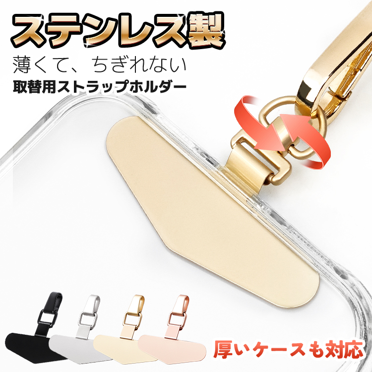 →頑丈で耐荷重5kg →ステンレス製スリムデザイン:ちぎれない、スタイリッシュ →取付簡単:端末とケースの間に薄いホルダーを挟むだけ。 |