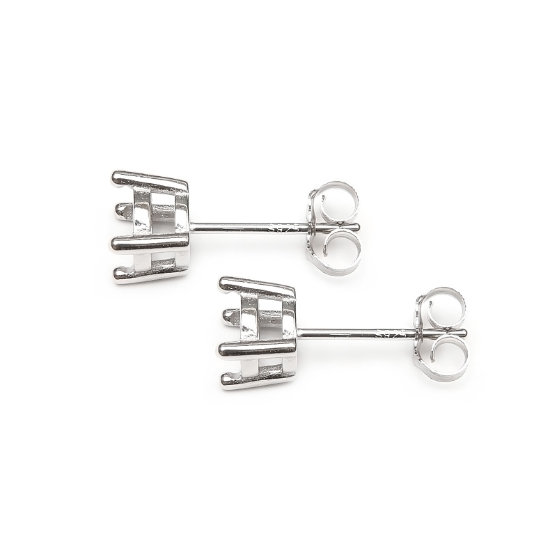 シルバー925(スターリングシルバー)の4本爪ポストピアス6mm[空枠][ロジウム]キャッチ付きになります。