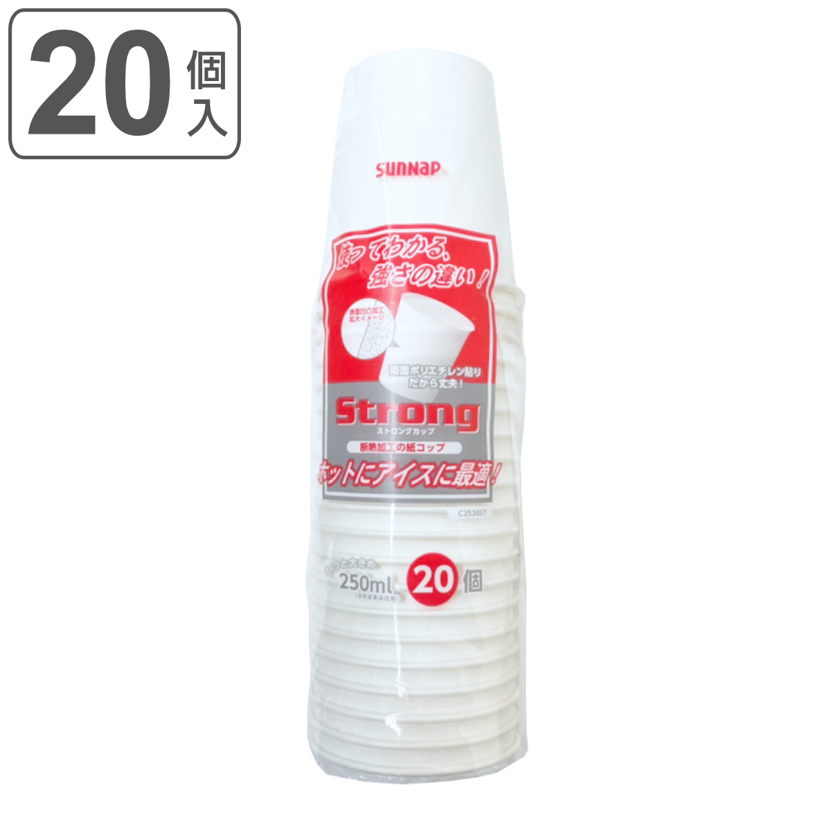 紙コップ ストロングカップ 250ml 20個入 ( 使い捨て 紙 コップ カップ 250 日本製 ホワイト )