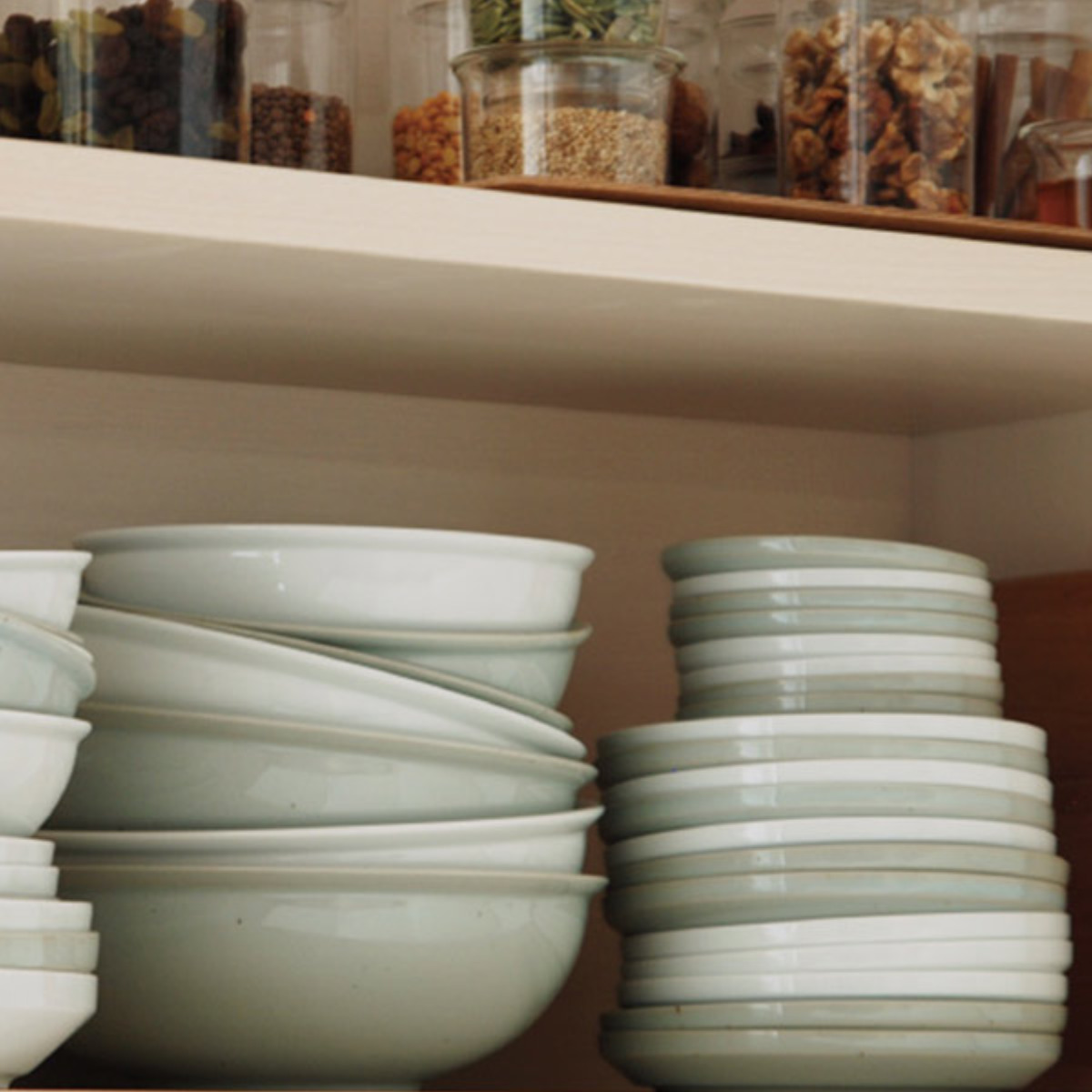 シャープな角度のリム和食器の鉢に近い低めのボウルに、シャープな角度のリムを付け足すことで洋食器のエレガントなフォルムを導き出しています。和食、洋食、どんな料理にも合う使い勝手のよいうつわです。
