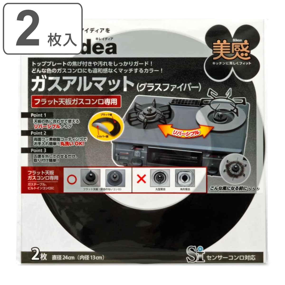 ガスマット ガスアルマット フラット天板コンロ用 グラスファイバー 直径24cm 2枚入 ( リバーシブル ガスコンロ用保護マット フラット天板ガスコンロ専用 )