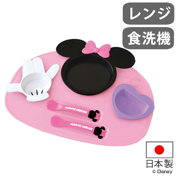 いつものご飯が、可愛いランチプレートに盛りつければ華やかに大変身です。大好きなキャラクターと一緒に楽しい食事ができます。お皿は分けて使用できるので、個別に温度調整が出来て、忙しいママも大助かりです。小さいお子様でもお皿が持ちやすく食べやすい形です。ワンプレートとしてではなく、小皿単体でも使えるので便利です。可愛いデザインなので、自分で進んでご飯を食べれるようになり、…【商品詳細】 サイズ/食器セット時:約幅35×奥行28.2×高さ3.8cm 重量/約312g 内容量/1セット(パレット皿1枚、小皿3枚、スプーン1本、フォーク1本) 材質/ポリプロピレン 生産国/日本製 備考/※電子レンジ・食洗機OK セット内容:小皿3枚、スプーン1本、フォーク1本《ミニー 子ども プラスチック 軽い ベビー 赤ちゃん 皿 小皿 うつわ プレート ディズニー キャラクター ミニーちゃん 女の子 お子様ランチプレート 食洗機可 レンジ可 電子レンジ可 食洗機 電子レンジ 対応 可能 OK 出産祝い ご出産祝い 出産 ご出産 誕生日 プレゼント ギフト 贈り物 お祝い 離乳食 お食事 食事グッズ ベビー 赤ちゃん グッズ 用品 【MickeyMouse_べびー】》