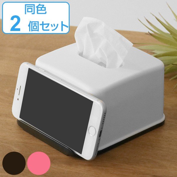 ティッシュケース ハーフティッシュボックス スマホスタンド 同色2個セット ( 節約 ティッシュ ティッシュボックス ハーフ スマホ スタンド 便利 シンプル )