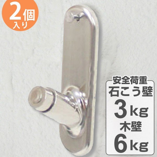 石こうボード壁と木壁の両方で使えるフックです。自宅の壁面の素材が分からない場合にも便利です。※コンクリート壁にはご使用いただけません。石こうボード壁・木壁等に短ピンと長ピンの2本で固定して設置してください。ピンをカナヅチなどで押し込んでください。1つ当たりの安全荷重は石こうボード壁に設置した場合3kg、木壁に設置した場合6kgです。【商品詳細】 サイズ/約幅1×奥行1.5×高さ3.4cm 内容量/1袋2個入り 材質/樹脂、スチールメッキ、ステンレス 備考/1つ当たりの安全荷重:【石こうボー壁の場合】3kg、【木壁の場合】6kg《石膏ボード壁用 石こうボード ベニヤ壁 収納 用 強力 吊り下げ 壁掛け 鍵フック 強力フック 小物掛け 時計掛け キッチン用品 キッチン小物 透明 色 しっかり 強い 壁用 シングルフック カレンダー 展示物 展示 絵画 オブジェ》