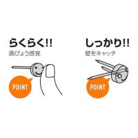 ![]() ![]() 穴跡が目立ちにくい 従来の木ネジを使用すると、壁に大きな穴があき、大切なお家の壁が台無しになっていましたが、ニコピンなら3本の細いピンで固定するので穴が目立ちにくく安心です。 ![]() 画びょう感覚でクイッと押すだけの簡単設置 取り付けは簡単!画びょう感覚でクイッと押すだけ。3本のピンがしっかりクロスして壁をキャッチ!さらにニコピンを縦に2個使用しているので、細いピンでも安全荷重10kgを実現しました! ランドセルや重い工具などの重量物も安心して掛けることが出来ますね♪ ![]() ![]() ![]() ![]() ![]() ![]() |
