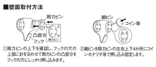 | 材質 | フック:スチールメッキ ピン:樹脂・ステンレス カバー:樹脂 |