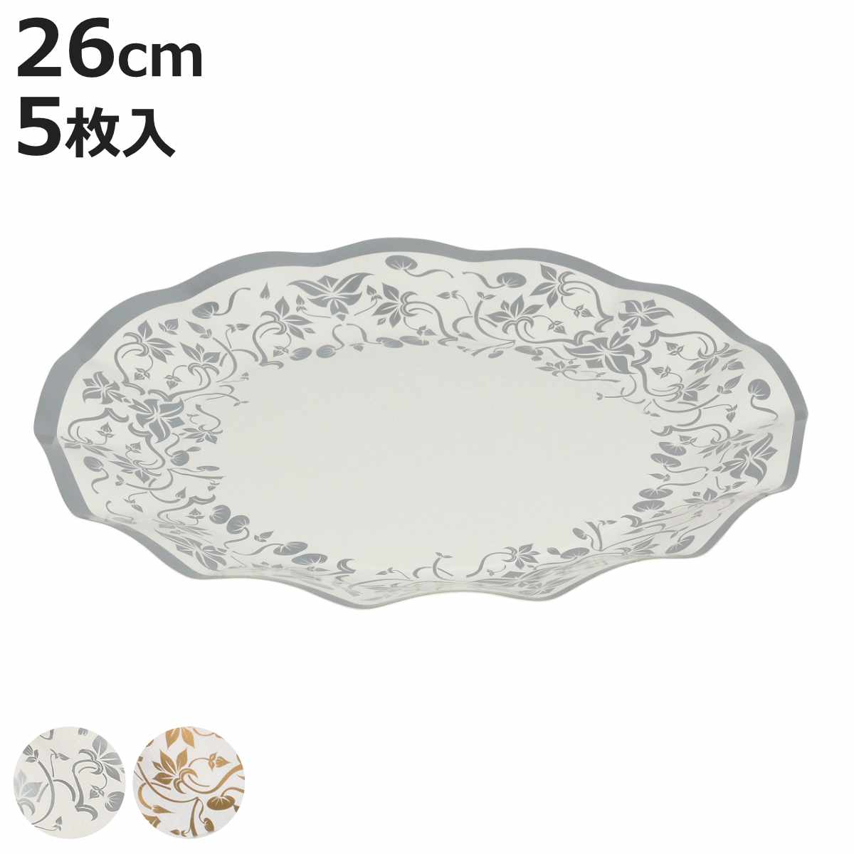 紙皿 リトルリッチ WAVEペーパープレート 26cm 5枚入 シルバー ( 紙製プレート 使い捨て食器 紙食器 ペーパープレート )