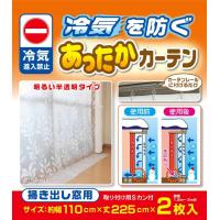 掃き出し窓用(幅110×丈225cm)2枚入カーテンレールのランナーに取り付けるだけで窓際からの冷気の進入を防ぐ、掃き出し窓用の断熱カーテンです。お部屋の温度低下を抑えるので暖房効率がアップします。半透明素材を使用しているので、室内が暗くなりすぎないのもポイントです。