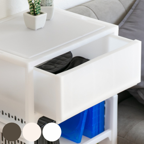 程よい透け具合の引き出し絶妙な透け具合の引き出しは、ほんのり中身を確認できる半透明色です。生活感が出過ぎるものを収納するのに役立ちます。