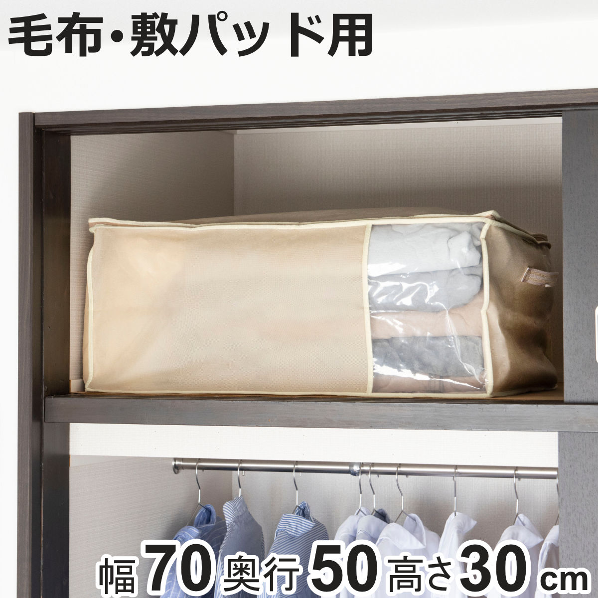 収納袋 幅70×奥行50×高さ30cm 毛布・敷きパッド袋 持ち手付き ( 毛布 布団 収納 布団収納袋 布団袋 )