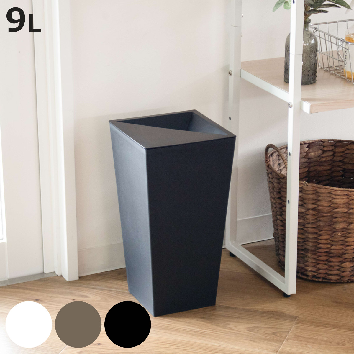 ゴミを「隠す」スタイリッシュなゴミ箱 9Lふたで中のゴミを隠すことができる便利なゴミ箱は、にじみ出る生活感を防いでくれます。 リビングはもちろん、洗面所や寝室など、日常の様々なシーンに溶け込みます。
