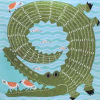 kata kataとは型染アーティスト松永武さん・高井知恵さんの二人からなるユニットです。大きな口の歯のお掃除はみんながお手伝い!!ついつい踊り出してしまうくらい気持ちがいい、仲良しのワニと鳥たちですが見ている人はハラハラしてしまうデザインです。