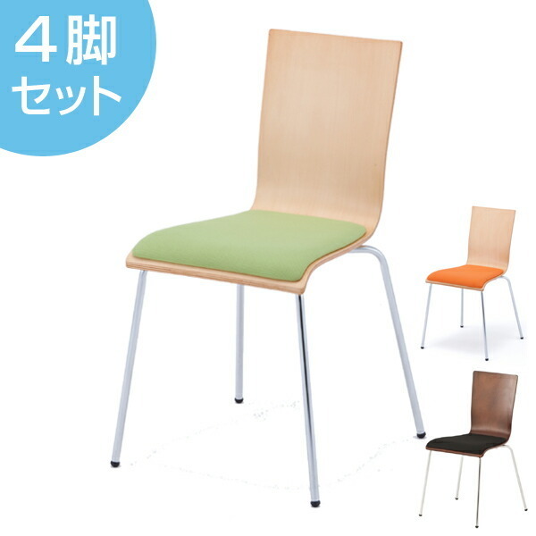 (法人限定) オフィスチェア プライウッドチェア 4脚セット パッド付 シンプル チェア イス オフィス用 ( オフィス スタッキング )
