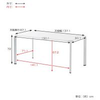 | サイズ | 本体:約 幅150.1(天板幅150.1)×奥行80.1(天板奥行67.1)×高さ72(cm) 足元空間:約 幅141.1×奥行71.1×高さ67.2(cm) 天板角切り欠き部分:6.5×6.5(cm) |