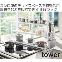 特典付き 山崎実業 tower コンロ奥ラック 3段 タワー ( 4903208035934 タワーシリーズ キッチンラック 可動棚 調味料ラック スパイスラック コンロ横収納 )