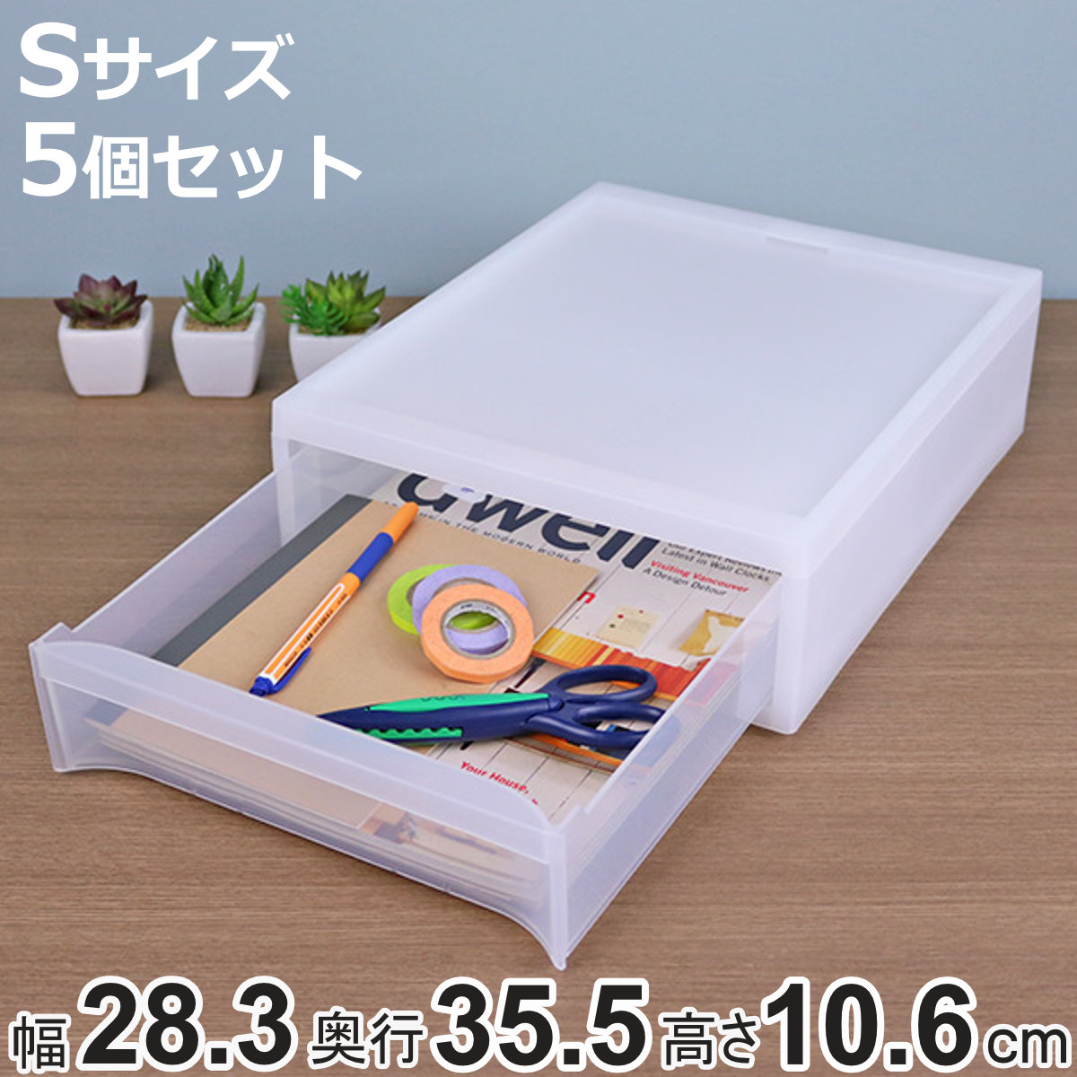スタックシステムケース Sサイズ 5個セットA4クリアファイルが入るサイズで、文具などをまとめて収納できるので、デスク整理に最適な引き出し収納ケースです。文具だけでなく、しわになりやすいシャツやYシャツを一枚ずつ収納するのに使うのもおすすめです。無駄のないシンプルなデザインで、どんな空間にも馴染みやすく、使いやすい収納アイテムです。
