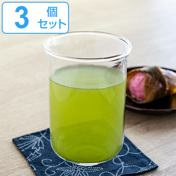 コップ 260ml ロング ガラス 湯呑み 耐熱 カップ 同色3個セット ( 冷茶グラス 湯呑 冷茶器 ガラス製 タンブラー お茶 )