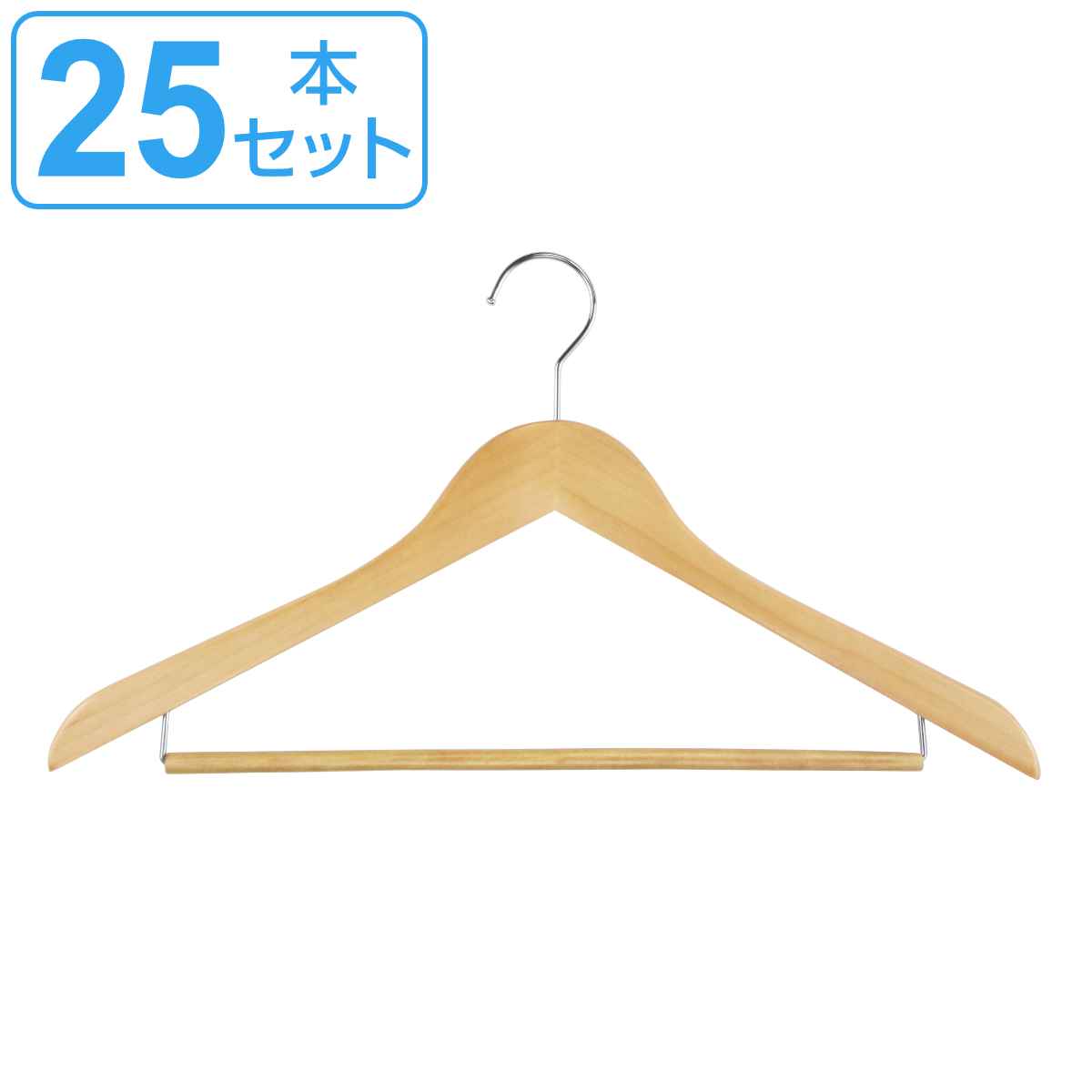 天然木素材の収納用ハンガー 25本セットクローゼットで場所をとらない薄型の収納用ハンガー25本セットです。自然の風合いをそのまま生かした、あたたかみのある天然木です。