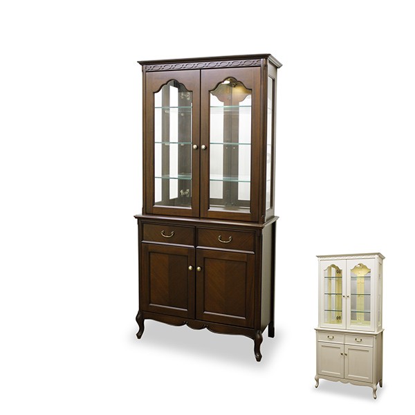 | 材質 | 【ホワイト】 主材:マホガニー(脚部)、リンデン、MDF 突板:リンデン 【ダークブラウン】 主材:マホガニー、MDF 突板:マホガニー 天板、前板模様貼り仕様 【共通】 ガラス 塗装:ポリウレタン塗装 背面処理:塗装仕上げ |