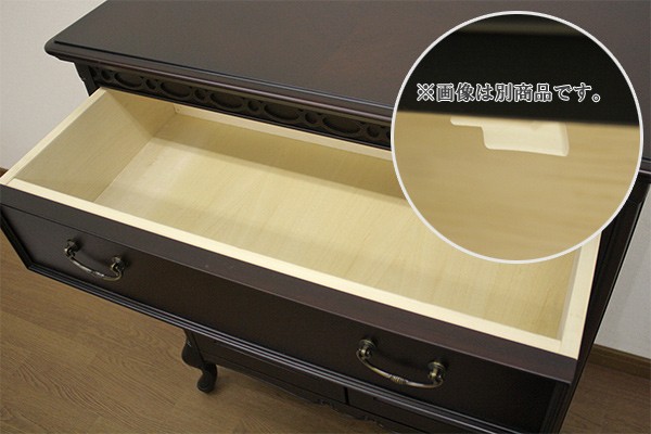 | 材質 | 【ホワイト】 主材:マホガニー(脚部)、リンデン、MDF 突板:リンデン 【ダークブラウン】 主材:マホガニー、MDF 突板:マホガニー 天板、前板模様貼り仕様 【共通】 塗装:ポリウレタン塗装 背面処理:塗装仕上げ |