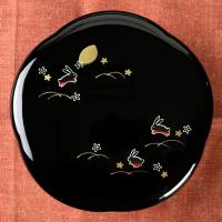 やすらぎのおもてなしに。跳ね回るうさぎがかわいい菓子器●石川県山中塗で作られている合成漆器のフタ付き菓子器です。