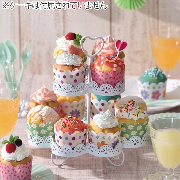 ケーキスタンド 2段 白 レース調 カップケーキ スタンド スチール 組立式 ( ケーキ デザート デザートスタンド カップケーキスタンド )