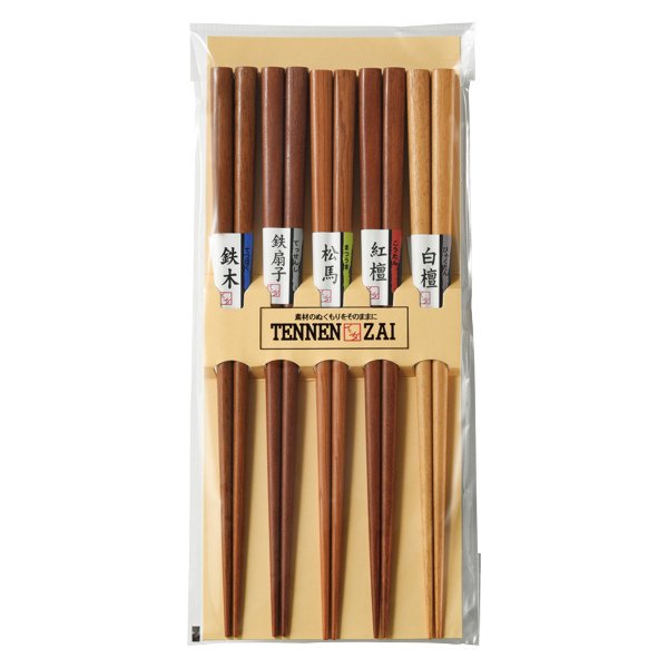 5種類の天然木使用のナチュラルな風合いのお箸セット●天然木を使用しており、素材そのものを生かしています。
