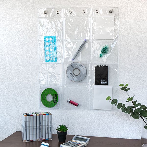 透明ポケットで見せる収納CDやハガキなどの収納にも便利です。