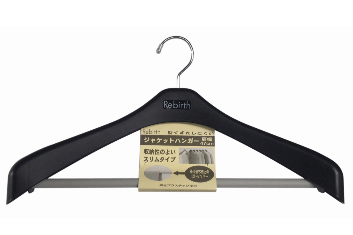 再利用樹脂を使用した、エコでお買い得なジャケットハンガー●再生プラスチックを使った環境に優しい素材のジャケットハンガーです。