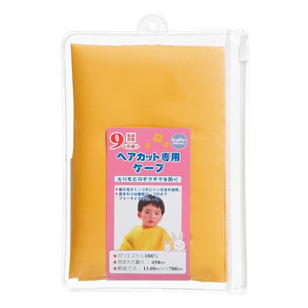 ヘアカット中に首まわりのチクチクを防ぐケープです。9ヵ月頃からの乳幼児のお子さまにお使いいただけます。髪の毛がくっつきにくいポリエステル製です。首まわりは着脱テープで調節できるフリーサイズ仕様です。【商品詳細】 サイズ/断裁寸法:約縦114×横75cm 首まわり最大:45cm 重量/約53g 内容量/1個 材質/ポリエステル100%(静電気防止加工) 生産国/日本製 型番/BA-113《赤ちゃん ヘアカット用品 ベビー用品 セルフカット 子供用ケープ 散髪エプロン ヘアーエプロン 髪の毛 髪 切る 子ども用 9ヶ月 1歳 1才 ベビー用 衛生用品 ヘアケア ヘアセット 赤ちゃん用品 ケア用品 便利 出産準備 お祝い LH3159》