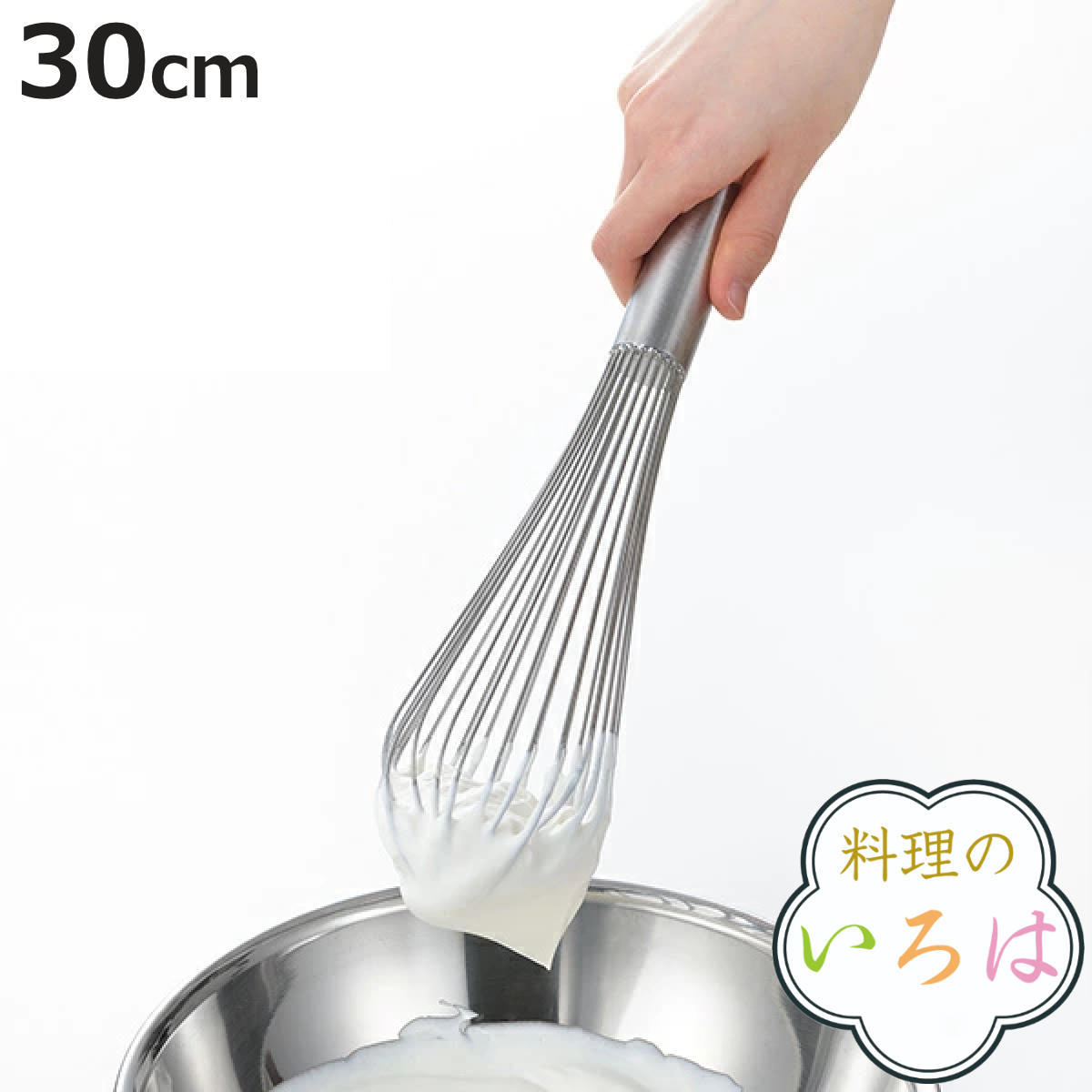 しっかり泡立つプロの泡立て器 30cmプロが使う泡立て器にも使われているピアノ線12本使用して造った本格仕様の泡立て器です。空気をたっぷりと含ませ、手早くきめ細かい泡立てができます。