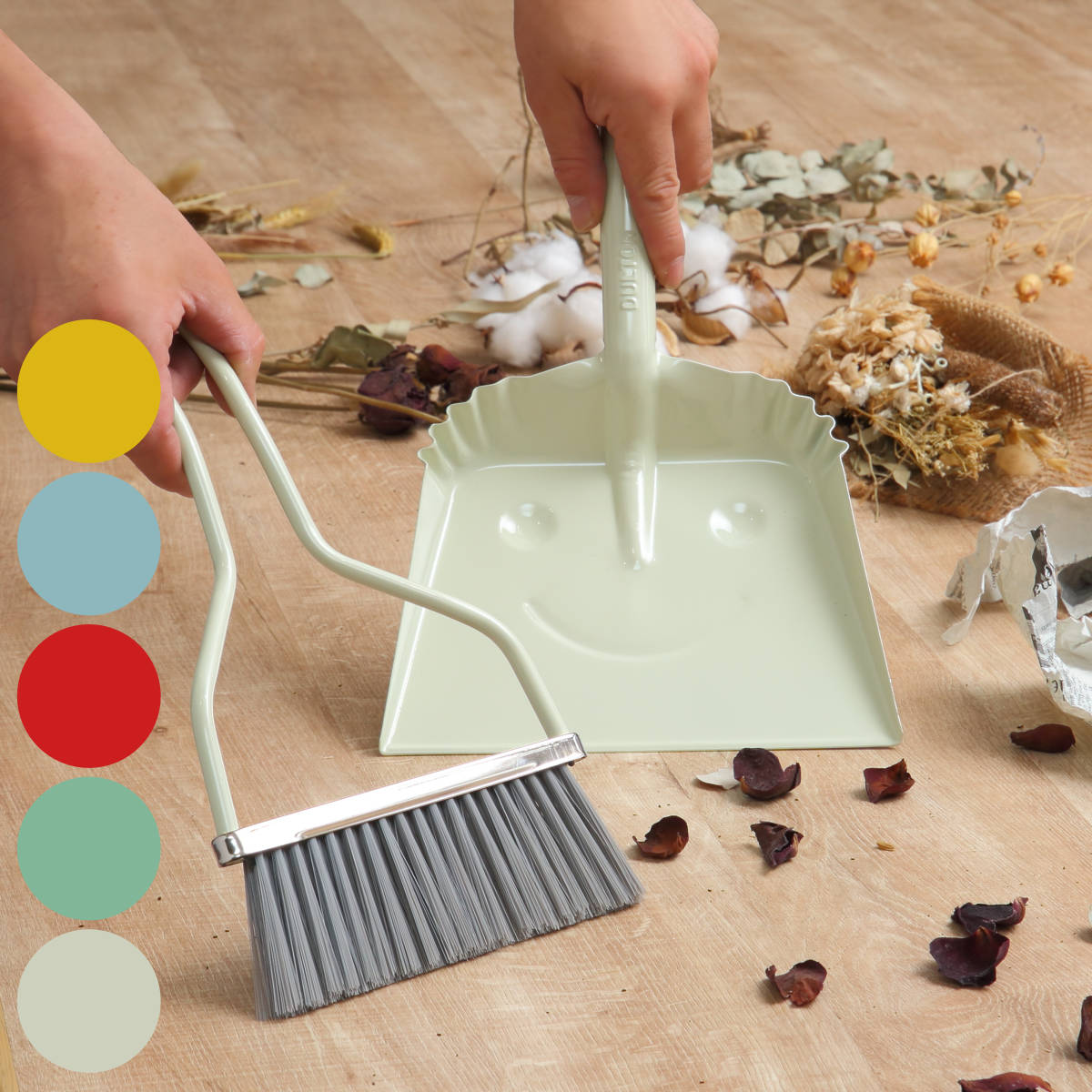 いつでもゴミを笑顔で受け入れてくれる、遊び心のあるほうきとちりとりのセットです。インテリアのアクセントにもなるポップなカラーとかわいいデザインが魅力、使わない時も目の付くところに飾っておきたくなるお掃除アイテムです。