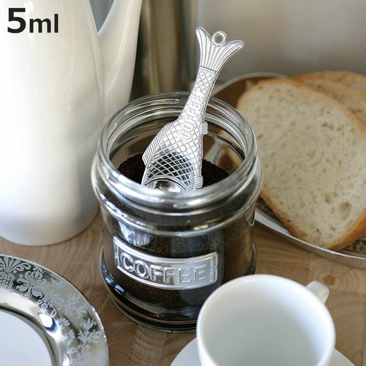 5ml計量できる「sugarスプーン」魚のフォルムをした、アルミ製計量スプーンです。5ml計量できます。インテリア要素が高いので、フックなどに吊って見せるインテリアとしてもおすすめです。