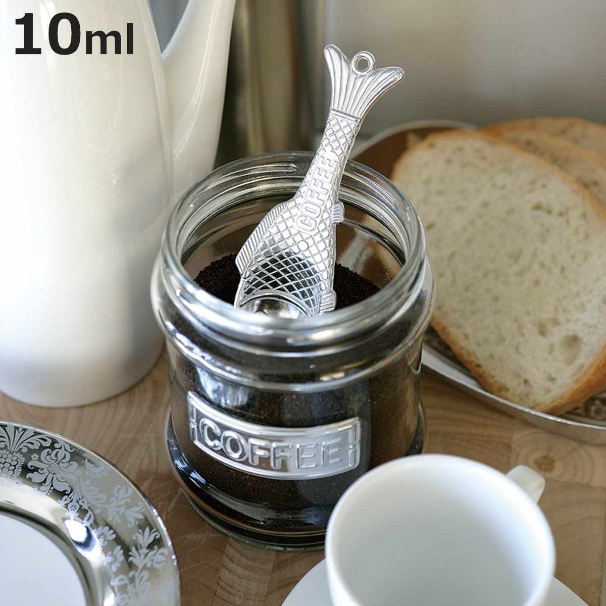 10ml計量できる「coffeeスプーン」魚のフォルムをした、アルミ製計量スプーンです。10ml計量できます。インテリア要素が高いので、フックなどに吊って見せるインテリアとしてもおすすめです。