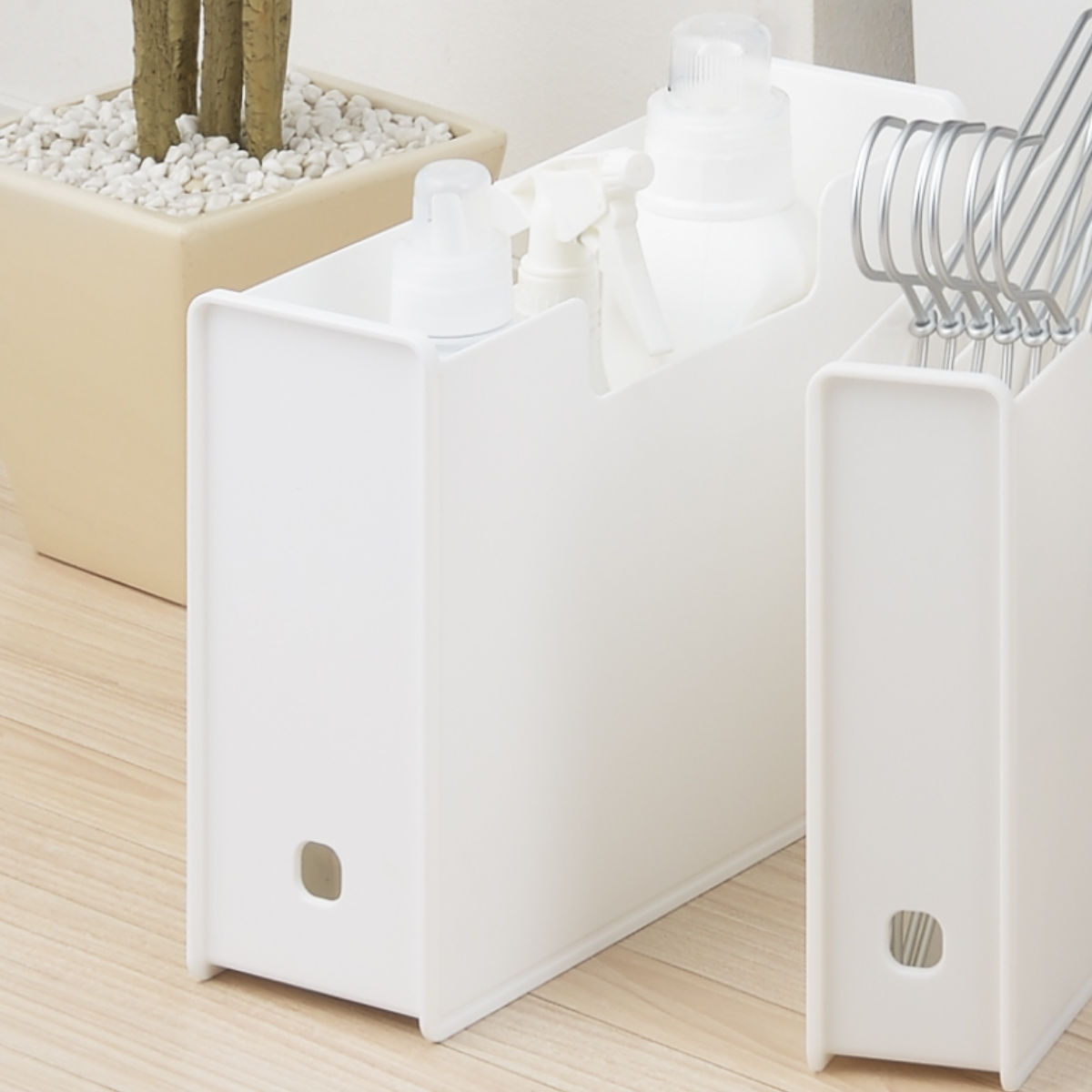 収納物や収納場所に合わせて使いやすいスクエア型。デッドスペースを作らず綺麗に並べることができます。