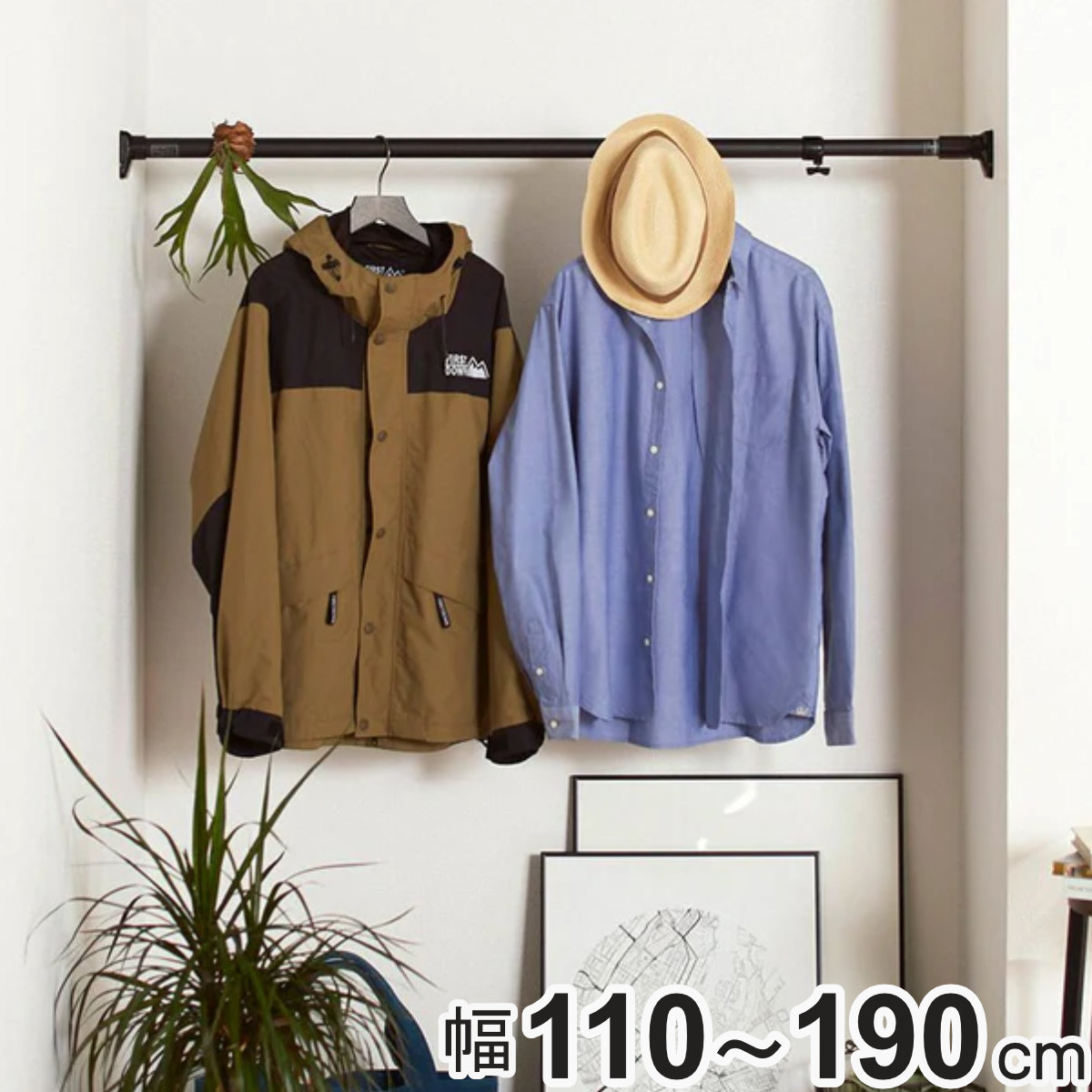 マットブラックがおしゃれな突っ張り棒 110〜190cm幅広いテイストのインテリアに馴染む突っ張り棒です。クローゼット、キッチン、ランドリーなどのデットスペースを利用して収納力をアップできます。壁に穴をあけないので、賃貸住宅でも手軽に収納スペースを増やせます。
