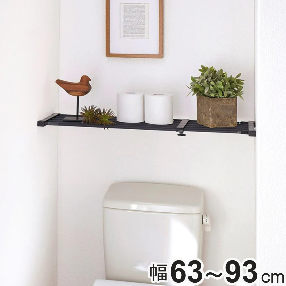 マットブラックがおしゃれな突っ張り棚 63〜93cm幅広いテイストのインテリアに馴染む突っ張り棚です。トイレ、ランドリー、キッチンなどのデットスペースを利用して収納力をアップできます。壁に穴をあけないので、賃貸住宅でも手軽に収納スペースを増やせます。